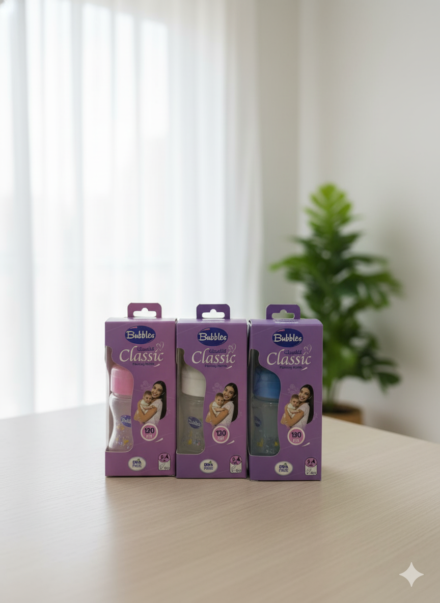 🍼 ببرونات كلاسيك: رضاعة طبيعية ومريحة بفضل حلمة السيليكون الناعمة والتصميم المانع للمغص. متوفرة بألوان وأشكال جذابة.