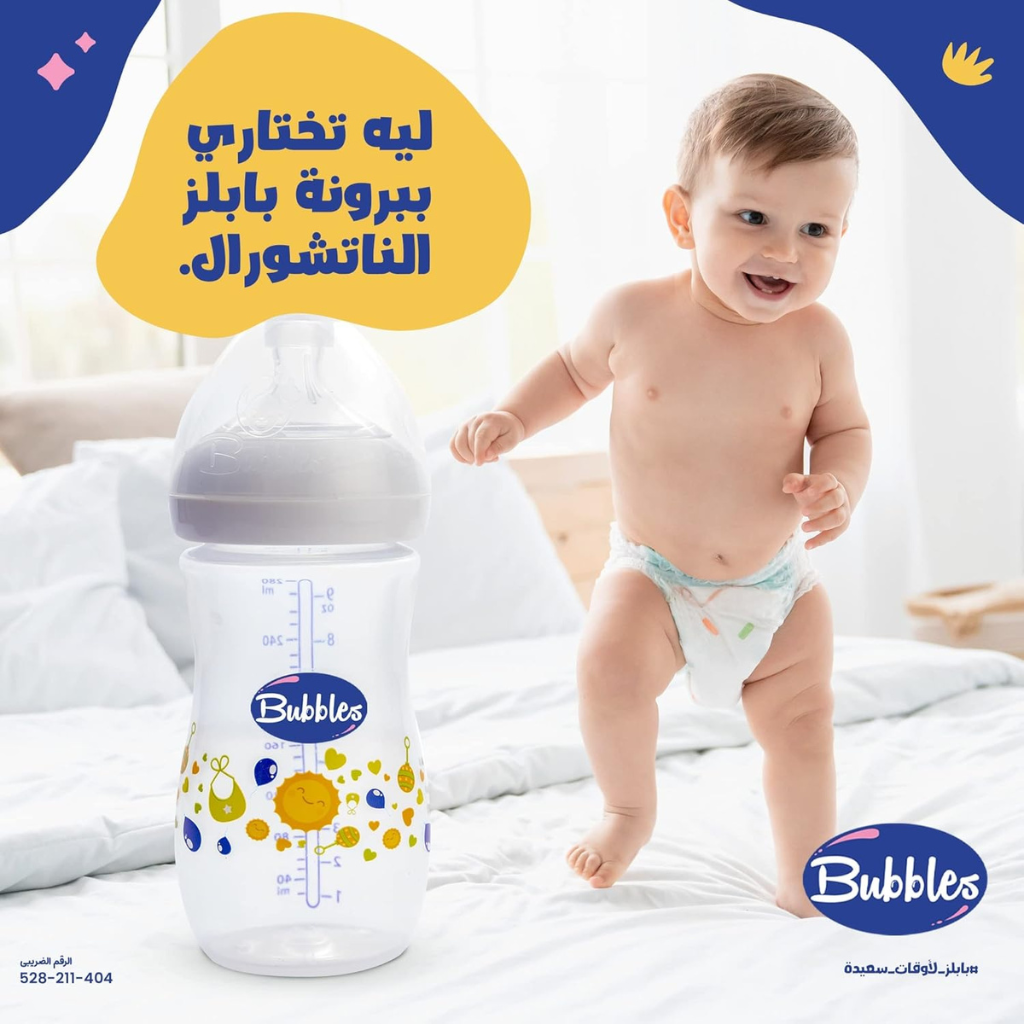امنحي طفلك تجربة رضاعة طبيعية ومريحة! بيبرونات Bubbles Natural مصممة لتكون أقرب ما يمكن للشكل الطبيعي، مما يسهل على طفلك التبديل بين الرضاعة الطبيعية والزجاجة.