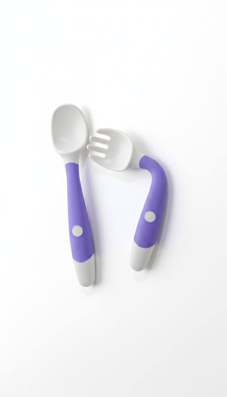 آمنة ولطيفة: الملاعق والشوك مصنوعة من مادة السيليكون الغذائي الناعمة والمرنة، وهي خالية من مادة BPA وآمنة تماماً على لثة وأسنان الطفل الحساسة.